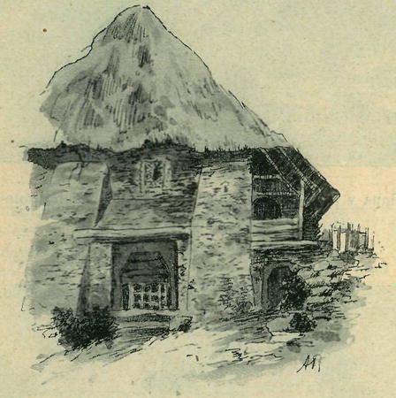 Špýchárek Zemanova statku v Křížoíě pod Blaníkem. Kreslila Anna Roškotová.