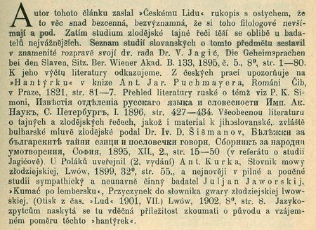 *) Laskavostí p. Dr. Karla Mareše, c. k. soudního adjunkta v Novém Městě na Moravě, dostal jsem zápisky p. Františka Vanička, náměstka c. k státního zástupce v Hradci Krájov-. Vedle praktických poznámek, jak si má soudce počínati řídě vyšetřování prohnauých šejdířů, zlodějů a šibalů, obsahují papíry ty řadu úryvkovitých rozmluv. Jmenovaným pánům sluší vzdáti dík Autor.