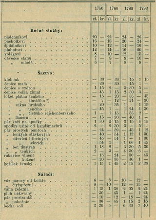*) „Dle toho o plátnech ostatních souditi se může; když Ž i t a v c i s plátny m chodívali, tehdy plátna lacinější bejvávala." — Jinde zmínka o sukně lichenberském, kutnohorském, polenském a humpoleckém.