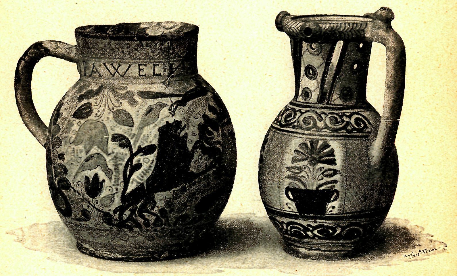 Džbány v knížecí sbírce v Třeboni. (Mareš-Sedláček, Soupis X. 80.)