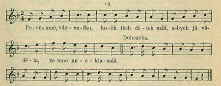 Za kamny je čtvero, pod kamny patero, mám jich, má Nanynko, mám jich devatero.