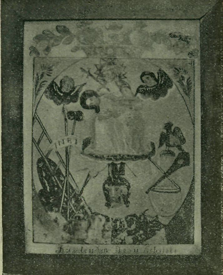 Č. 5. Malovaný obraz na skle z Novo Strašecka,. Fotogr. K Procházka. (Str. 490.)