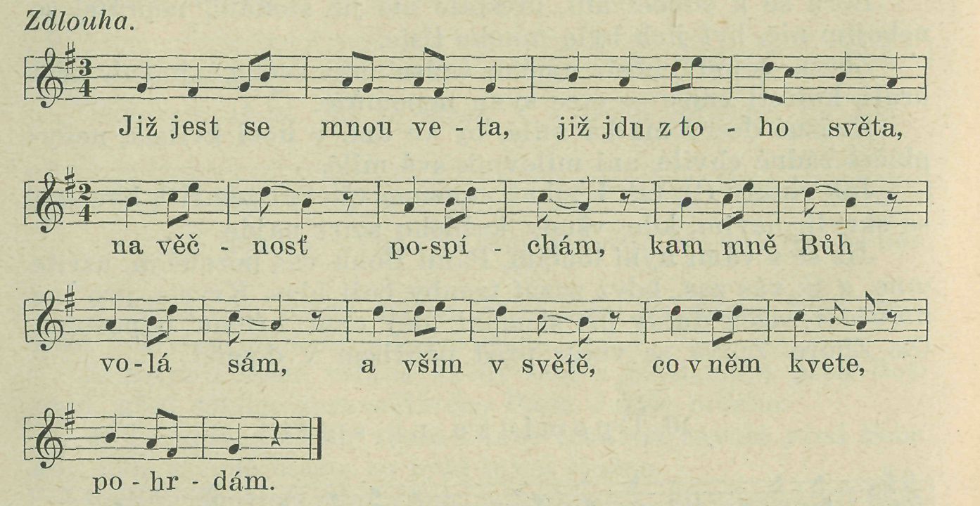 Tuť se Bůh dá, zas shledáme a všickni spolu poznáme, pů-jďem s Kristem do radosti, budem s ním v věčné slavnosti. (Ze Zhoře. Zpívá se večer v domě u mrtvoly).