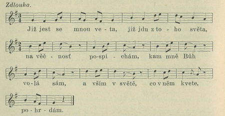 Dost jsem zde, dost pobyl, dost jsem zde zakusil; již zdraví, již radosť, již nemoc, již žalost, již jest všechno, jen buď Pán Bůh pochválen.