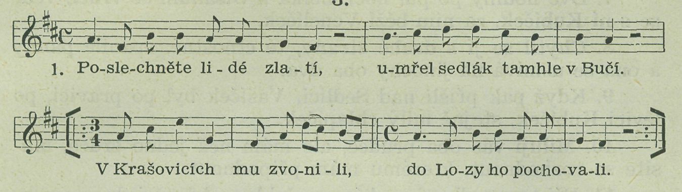 3. Kněze vzali ? tomu z Ledce, kantora zas ze Žebnice. Ministranta od Královic, chlapec z křížkem byl z Kunovic. (Kuně jovice.)