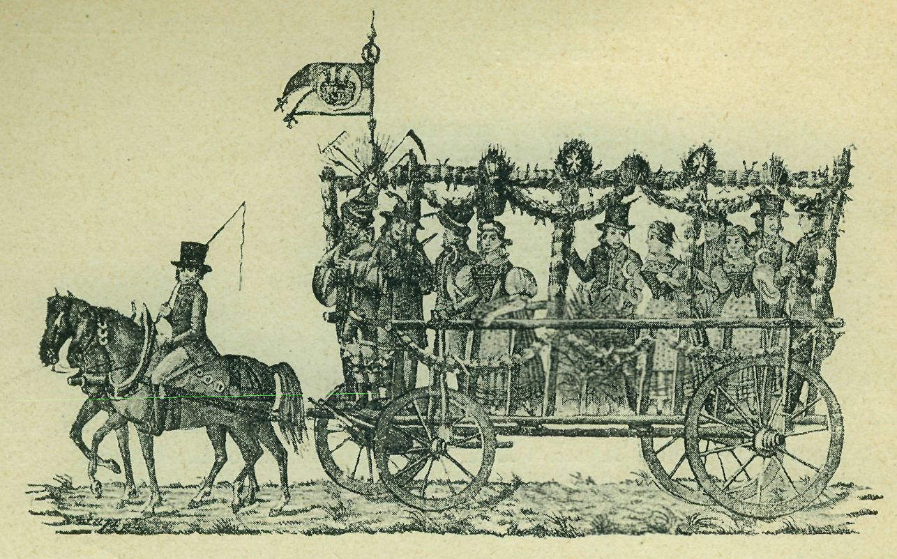 Obr. 6. Vůz s hospodáři z Pracheíiska při korunovaci 1836.