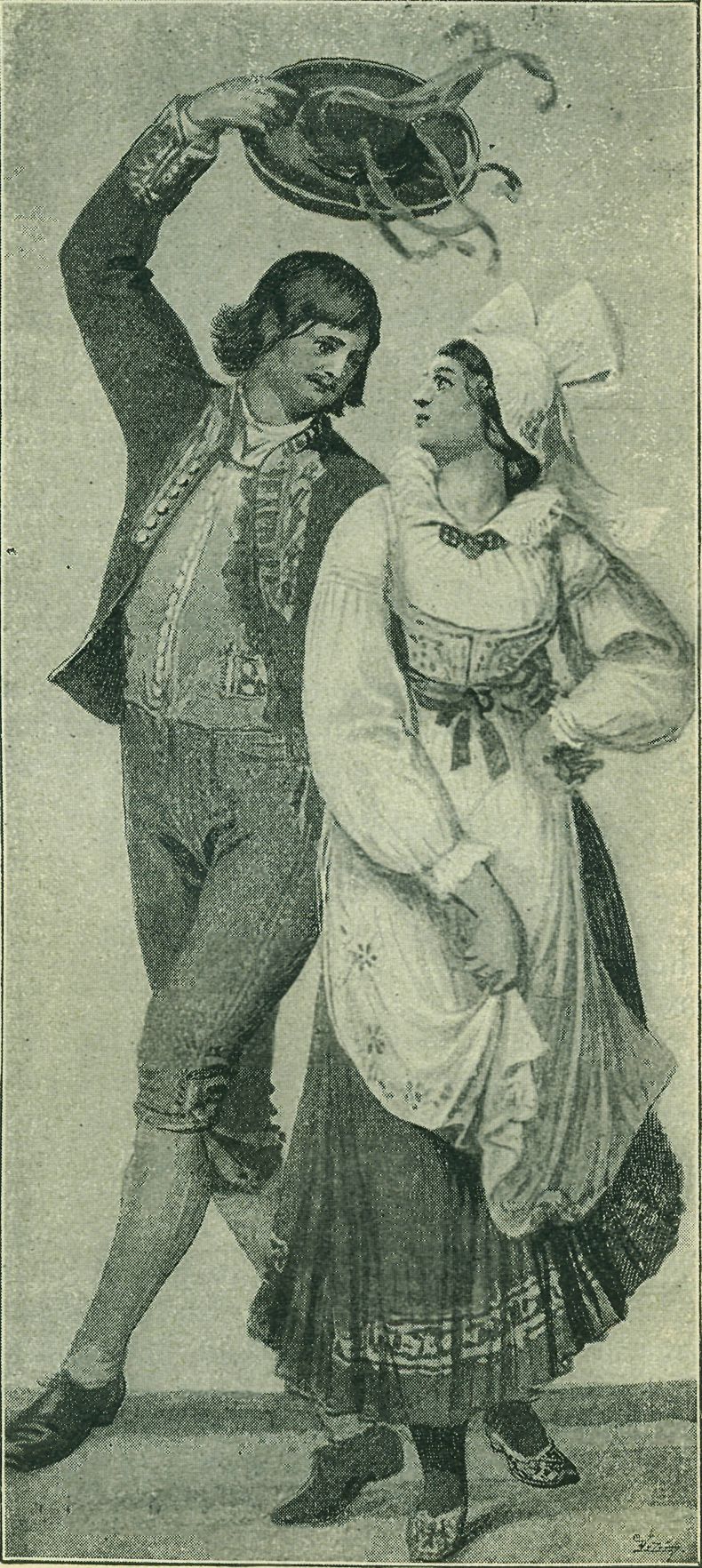 Když-se po dědině povídalo,*) že Šimkova robota na járku do »Zadků« již trhla a u Petrů že už poslední »kozu« (zbytek) na » Vrších* dožínají, šel pantáta Hejtmánků »naČesko« hudebníky jednat. Po celé dědině pak zase bylo pilno ! Všude samé drhnutí, líčení a uklízení. Bývaloť o obžinkách v Rovečném jako na výroční svátky, ba skoro jako o »hostech« (posvícení). Čekali se hosti, a to každá hospodyně chtěla míti stavení co nejpěkněji vysmej-čeno, koláče co nejlíp podařené, vždyť to již bylo z nového. Však když Šim-kovic žnečky z pole domu šly, pantátu v čele majíce a vesele si prozpěvovaly, vyběhl kde kdo, aby tu hezkou písničku poslechl. Stará Kostelnice bývala u toho zpěvu vždycky »primo«. Přineslať tu písničku sama odkudsi do Rovečného, a ostatní žnečky jí naučila. Kostelnici poznal každý po hlase. Hned ji chválili, jak ten zpěv pěkně zaonačit dovede. A bylo to pravda. Jak hezky se to poslouchalo, když žnečky na humnech z čistá jasná spustily podle Kostel-ničina návodu: