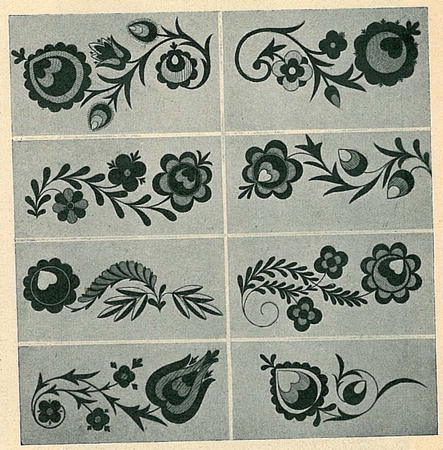 Obr 9 Vyšívání horáckého kožichu. Ornament na kapse. Kreslil J. Kopáč.