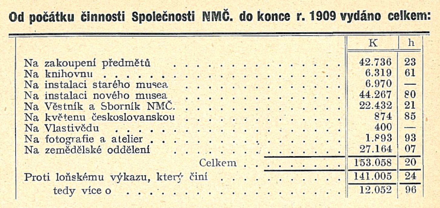 Od počátku činnosti Společnosti NMČ. do konce r. 1909 vydáno celkem