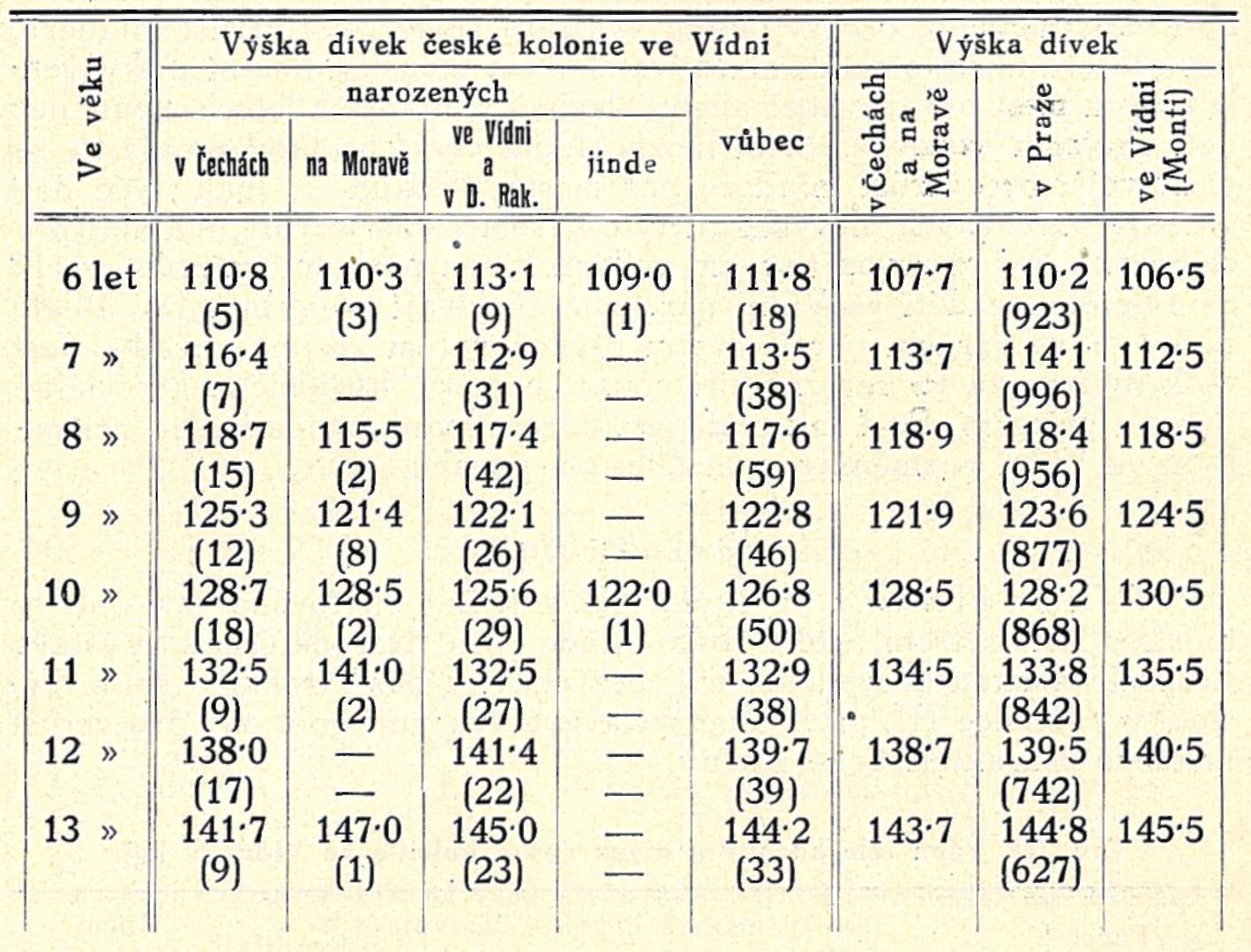 Tab. II. b) Průměrná výška dívek české kolonie ve Vídni dle původu a v srovnání s jinými dívkami,