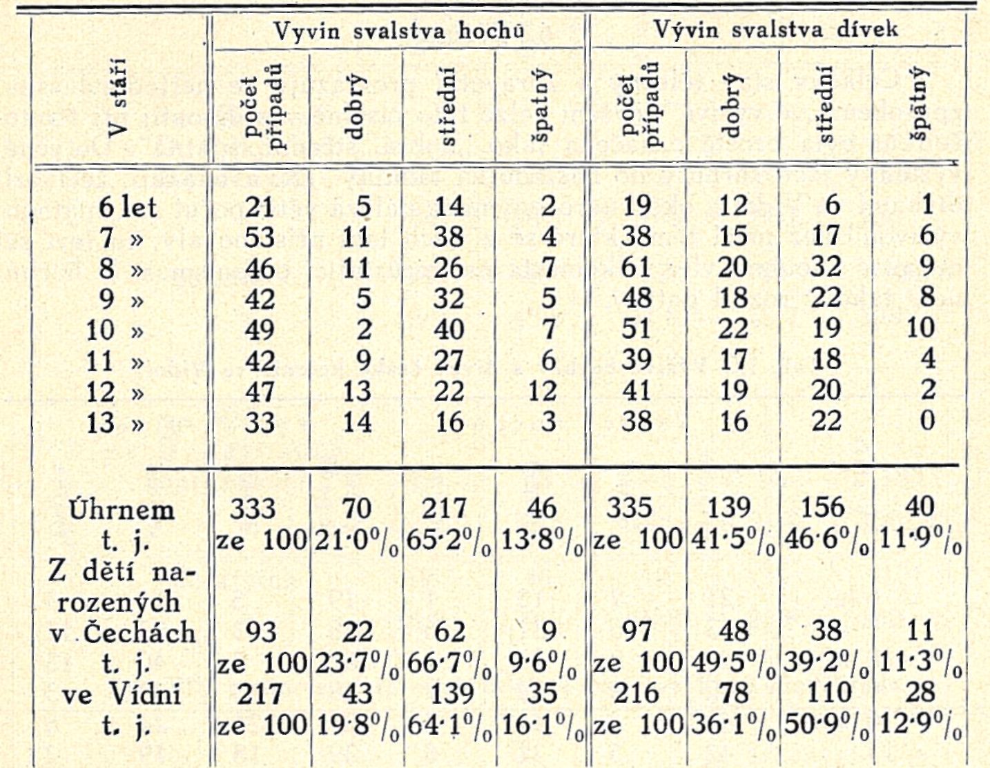 Tab. X. Vývin hochův a dívek české kolonie ve Vídní.