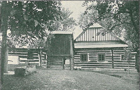 Obr. č. 5. Průčelí statku na „horách", Sílův grunt, založený prý 1666; charakteristické je pečlivé omalovávání.