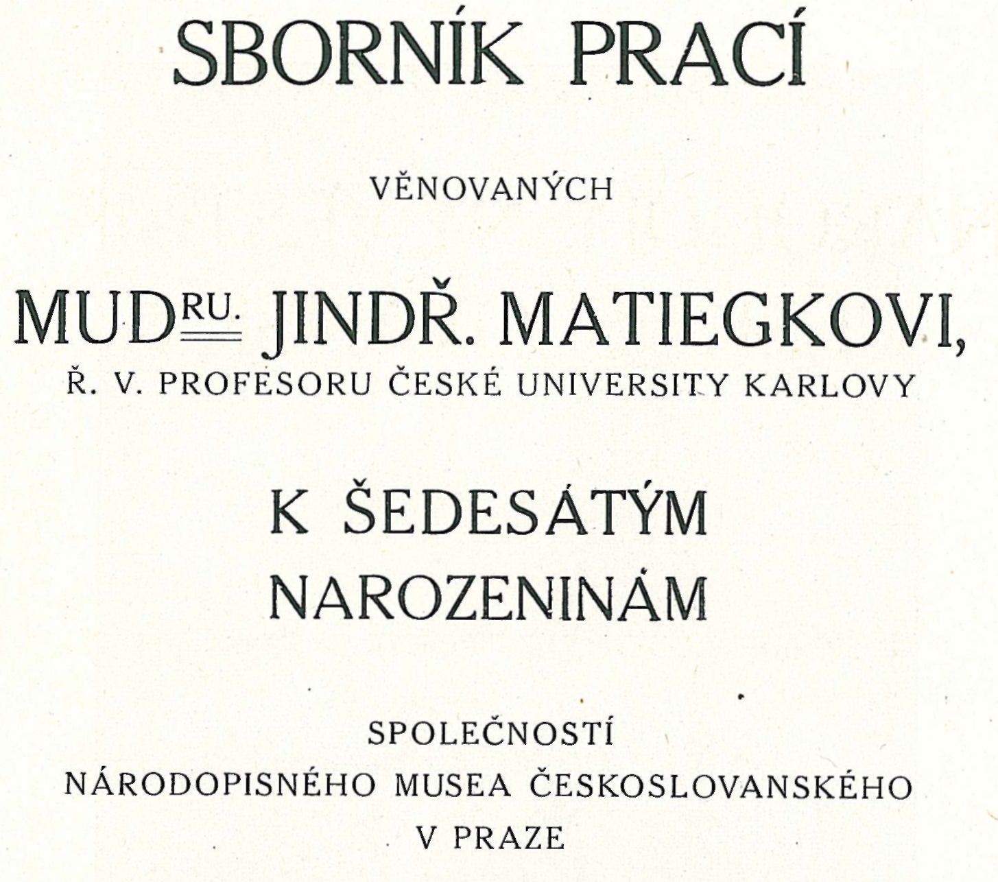 sborník prací věnovaných MUDru Jindř. MAtiegkovi k 60. narozeninám