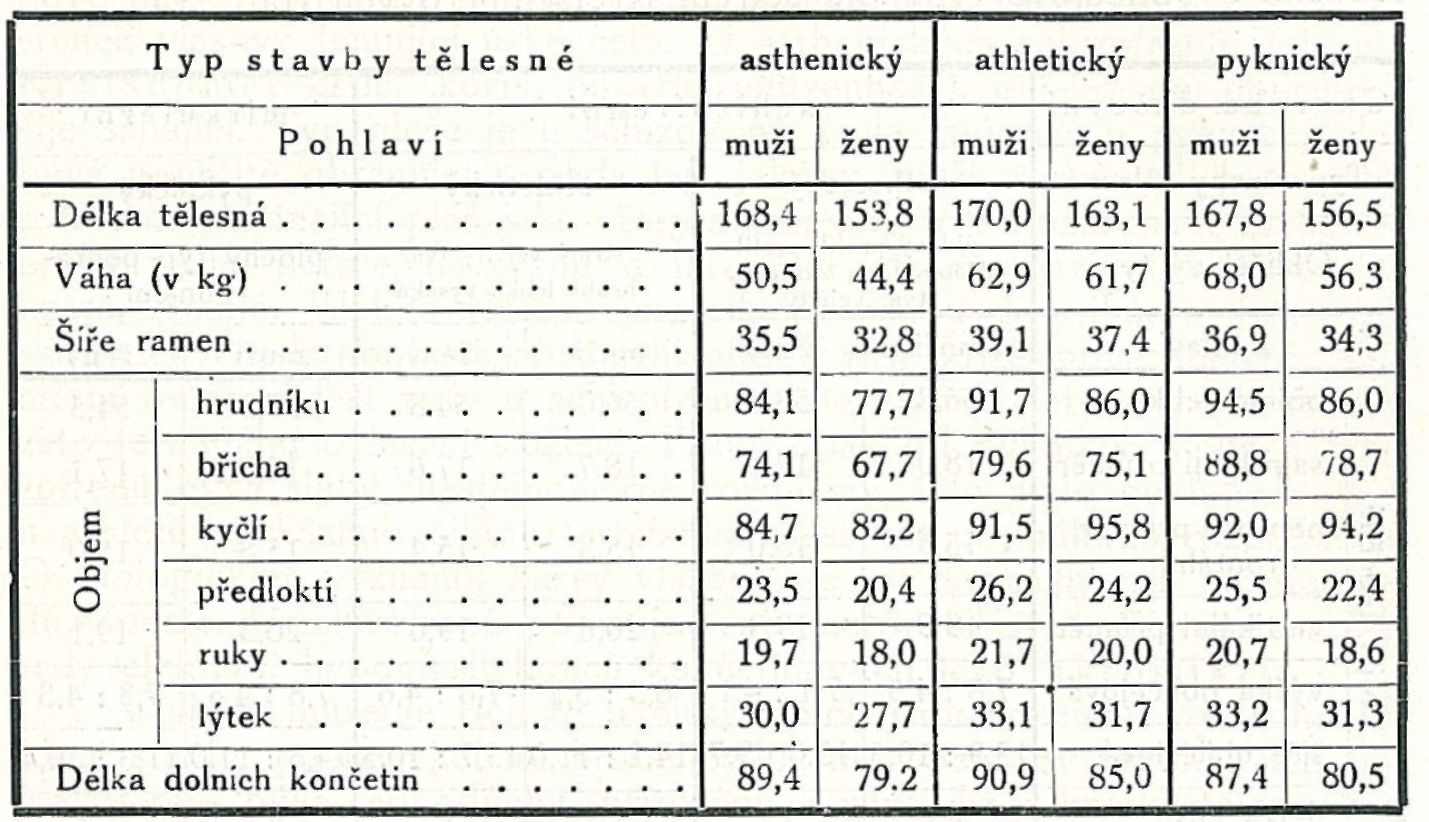 Tabulka I. Hlavní tělesné míry.