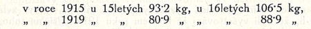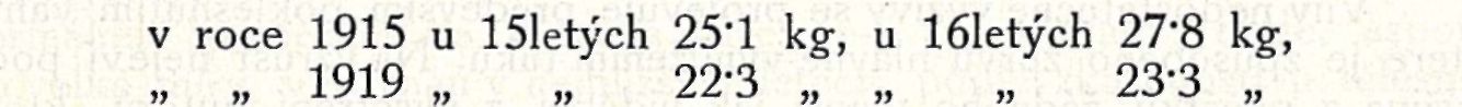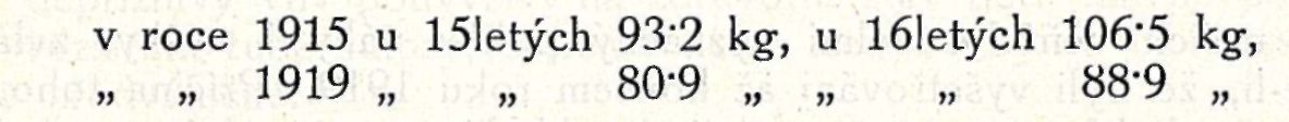 Shledáváme tu úbytek u 151etých 12'3 kg, t. j. 13'2%, u l6letých 17'6 kg, t. j. 16'5%.