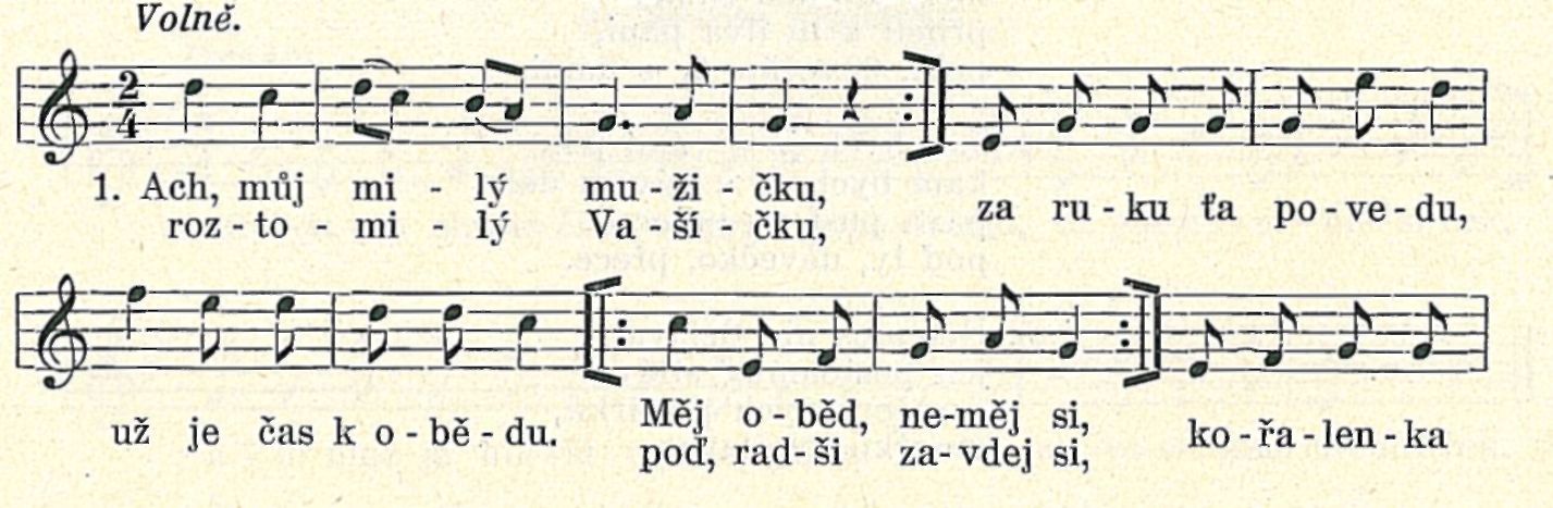 2. [: Leží, leží, bodaj zaspal:] ej,
