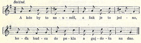 (Žertovný popěvek, při němž se vybírá na muziku.)