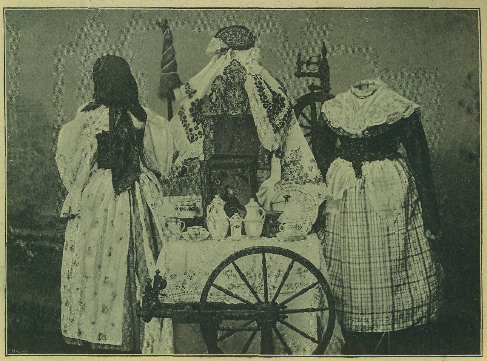 Skupina předmětů z národopisné výstavy v Josefově. (Dle fotografie K. Zeleného v Josefově.)