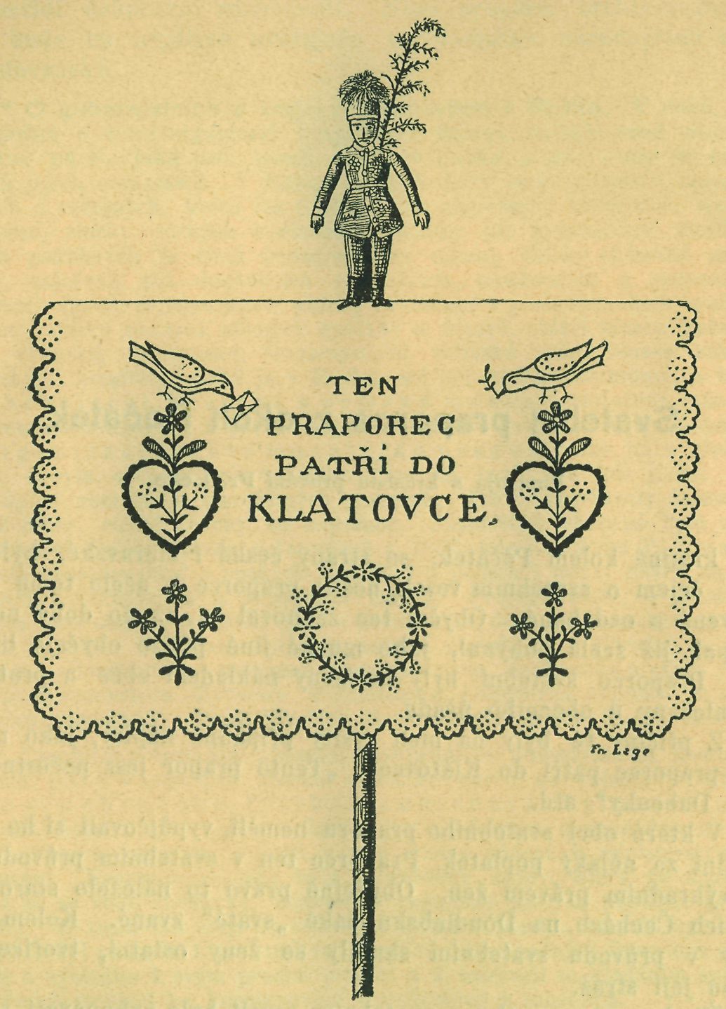 Jak patrno, měl původně praporec ten výzDam vážnější a důstojnější; sloužil zajisté ? větší cti a oslavě svatebního veselí. Tomu nasvědčuje nápis na praporci obce Jihlavky: „Sláva panu ženichovi