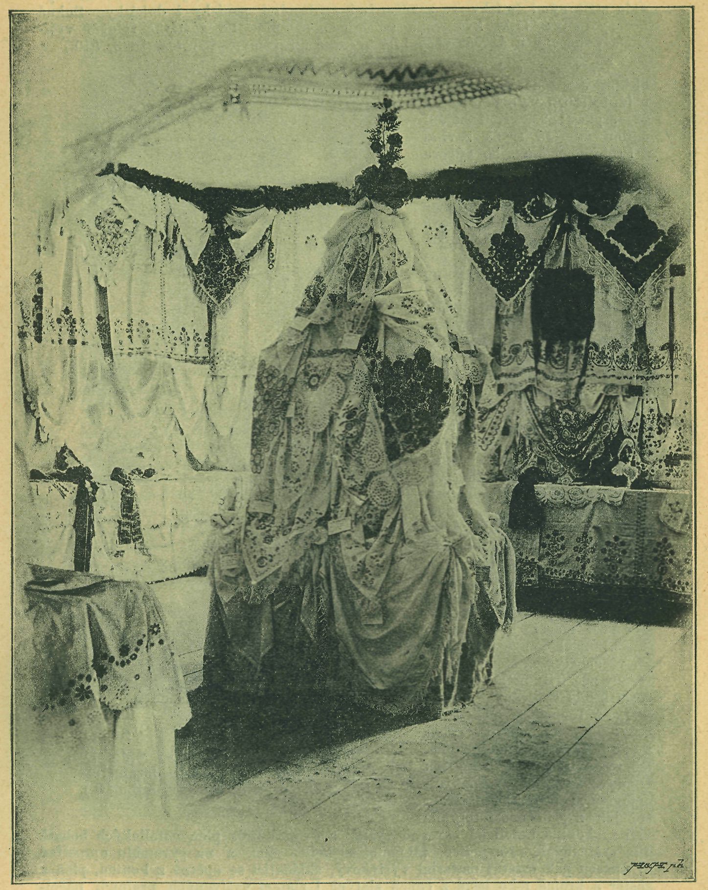 Čís. 3. Národopisná výstava v Netolicíeh. Oddělení výšivek. (Fotografie J. Příbramského v Českých Budějovicích.)