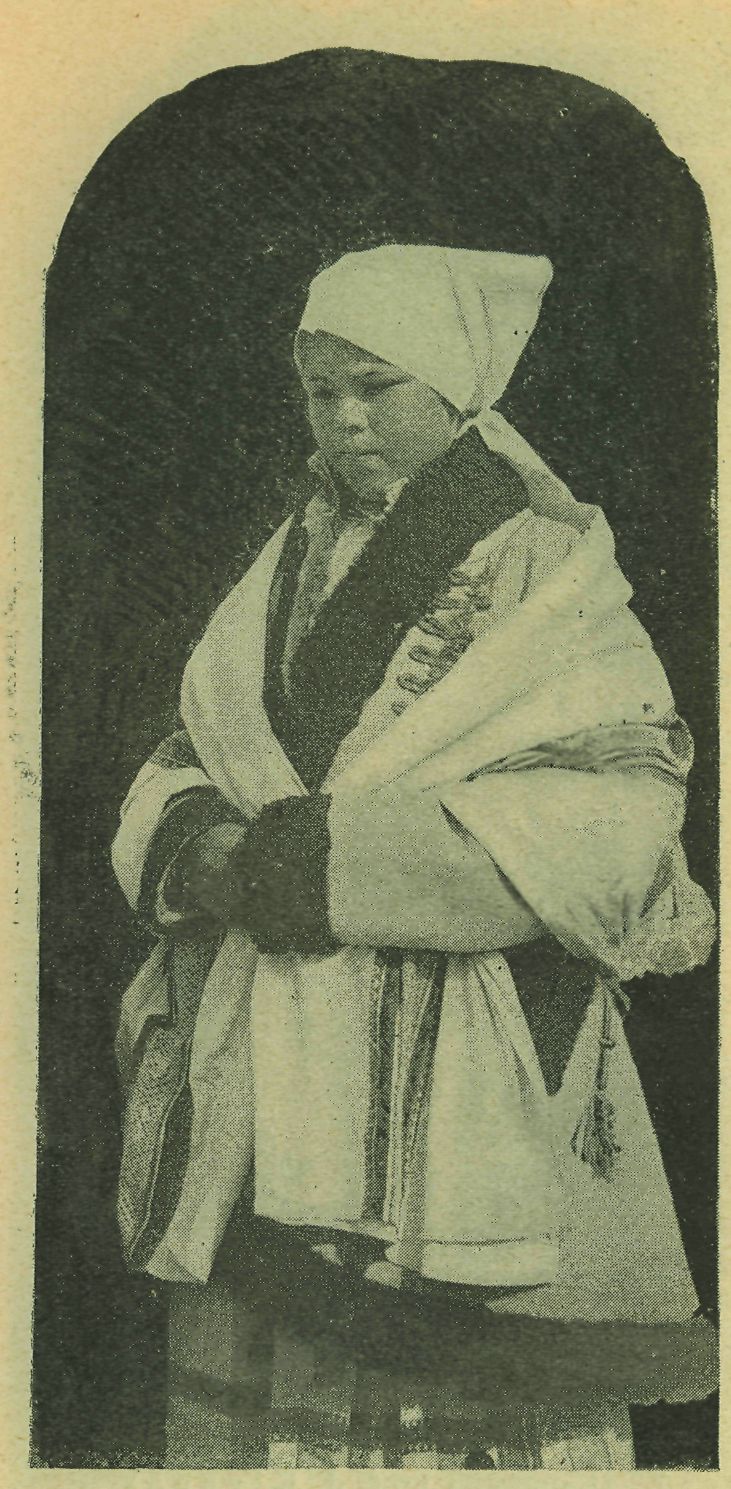 Čís. 3. Děvče z Velké v „mentýku", šatce a úvodnici. (Fotografie prof. J. K lva ně.)