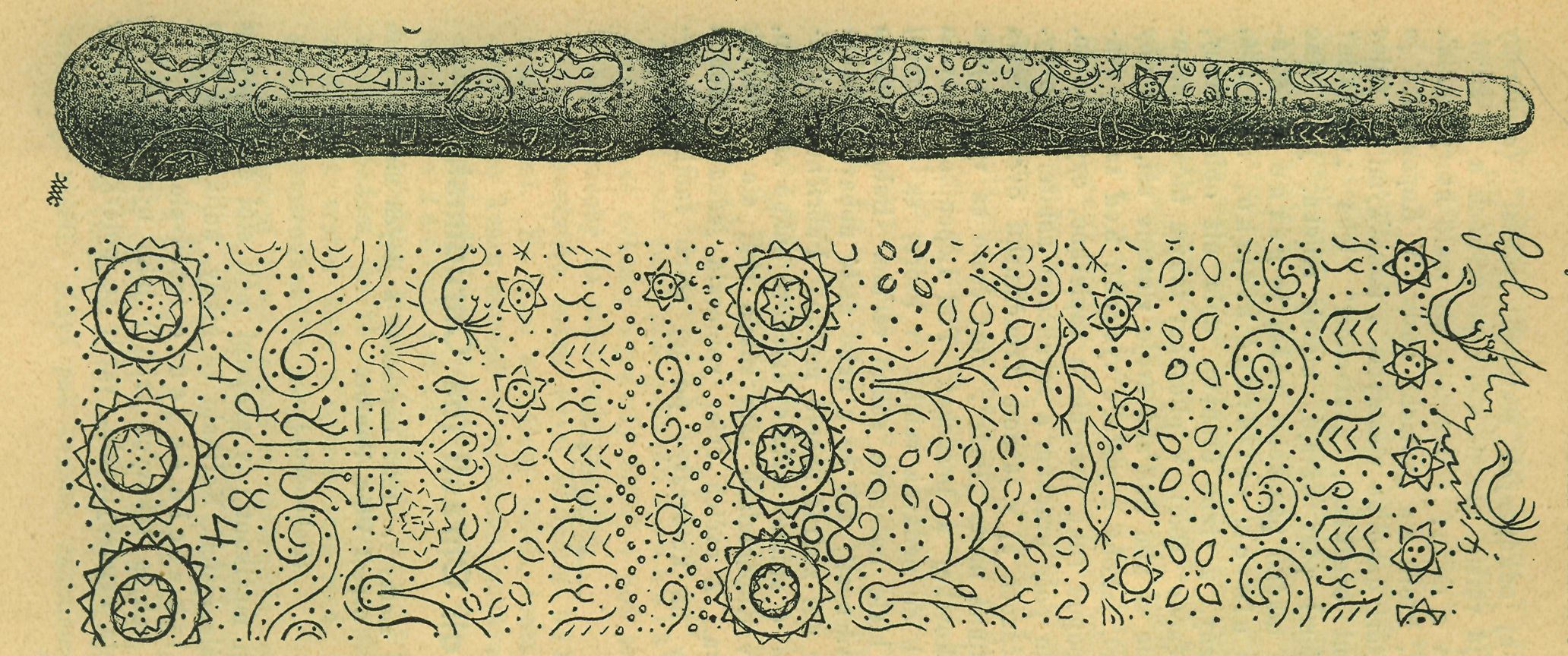 Čís. 2. Ozdoba rukověti bižiska pastýřského. (Majetek Náprstkova Musea v Praze.) Kreslila M. W a n k 1 o v a.