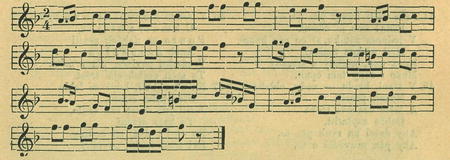 Hudebníci při tomto tanci hrají vždy první díl tak dlouho, dokud tancující se nepolíbili. Jeden z hudebníků obchází kruh a od tanečníků, kteří z kruhu, vycházejí, dostává na litr piva. Konec tance jest také žertovný. Poněvadž ten, kdo v kruhu obchází, volí vždy hezkou tanečnici, po případe, byla-li to tanečnice, hezkého tanečníka, zbývá v kruhu, když se již hodně súžil. několik tanečnic a tanečníků méně hezkých. Tu čtverák nějaký přiběhne do sálu s koštětem a zbylé „vymete z kola ven". Tito ovšem, spatří li ho s koštětem, rychle se rozutíkají.