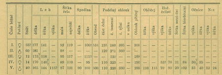 Čtyři lebky, jež jsem obdržel, a pátou u p. Malce chovanou, prozkoumal jsem a změřil, jak následuje: