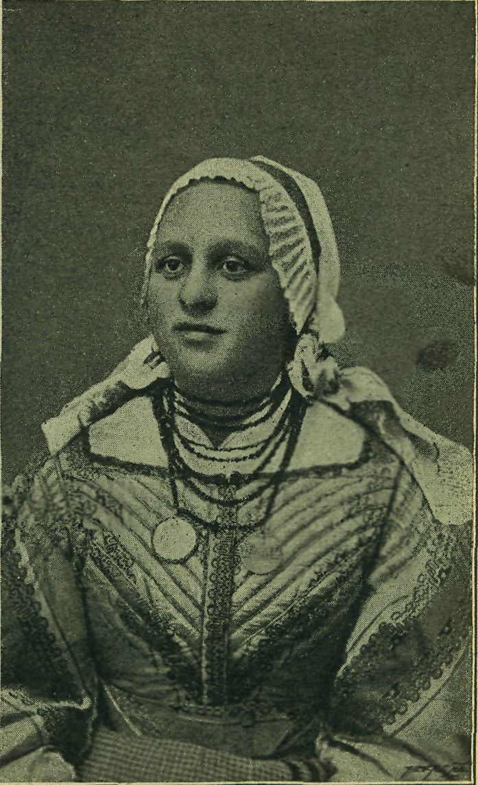 Po očepení tedy mladá žena nosívala již čepec zlatý do kostela, na svatby, pouti a podobné slavnosti. Na krtiny, k muzikám a „na táč" ke kmotře nebo vážené příbuzné ženy brávaly čepce bílé, kterých mívaly vždy několik.:l) I na pohřby je nosívaly s bílými „holubinkami" ; když později místo holubinek pracích, vyšívaných dávány také k čepcům bílým holubinky pentlové, jaké u zlatých čepců bývaly vždycky, volily pro tyto čepce na pohřeb holubinky z pentlí světle fijalových. Nosívaly pak na pohřby čepce bílé i za letního vedra i za zimních mrazů (mrzlo-li příliš, vázaly si šátek rovněž bílý na podbradek složený uzly na temeně přes čepec), k oblekům cerým bírým, které také za každého času ročního stejně na pohřeb oblékaly, věrny jsouce starým obyčejům slovanským, dle nichž barva bílá byla barvou smutku. Býval tak bíle oblečen celý zástup žen od malých děvčat až po stařeny; jen panny, když nesly ke hrobu mládence, nebo když mrtvou družku doprovázely, ověnčenou hlavou v záplavě smutné barvy Mlé činily výjimku.
