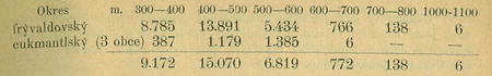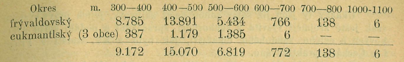 Středisko obyvatelstva leží tedy ve výši 400—500 m., což jest zásluhou okresního města (441 m. nad mořem). Nad 600 m. zůstává již jen nepatrný zlomek obyvatelstva. Nejvyšším obydleným místem tohoto okrsku, zabírajícího nejvyšší body Slezska, jest hostinec Červená Hora (Rothenberg, 1011 m. vysoko) na silnici vedoucí z Domašova v údolí Bělé do údolí moravské řeky Děsné.