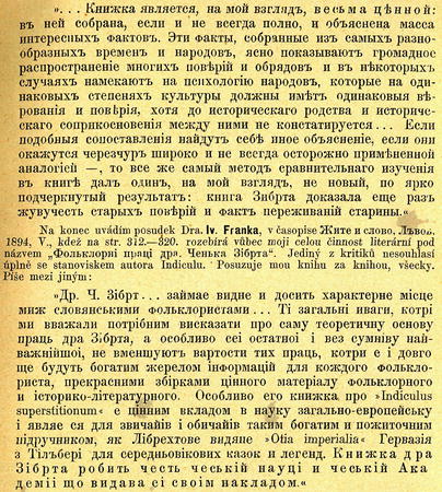 V několika exemplářích. Dobře je znám. Zdá se však, že kritik zapomíná, že dnes citovati jako autoritu Afanasjeva a jeho vývodů se dovolávati, značilo by posunouti vědecké stanovisko v oboru bájeslovného a zvykoslovného studia o několik desetiletí na zad. To jen mimochodem. Ruský kritik zakončuje takto svůj posudek: