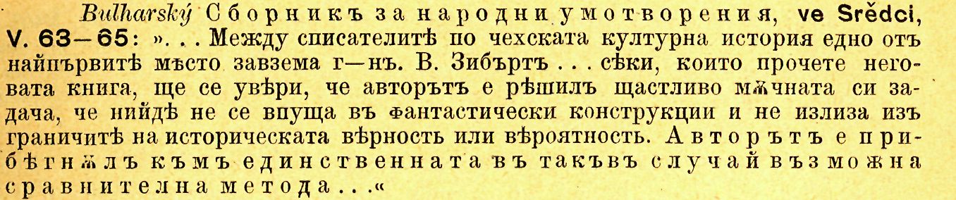 Vienac, v Záhřebe, 1891 čís. 14: „Mladí, no daroviti i preko mjere mar-Ijivi naučnjak česki vDr. Čeněk Zíbrt napisao je več čitav niz prilogä k éeškoj kul-turnoj povjesti . . . čovjek se mora úpravo diviti marljivosti . . . kad vidi, koliki je materijalmorao savladati. . . Djelo je osnováno na širokoj osnovi . . ."