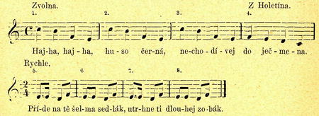 III. já vyskočím vokýnkem, proskočím se s nulánkem. Hulán taky pokročí, pěkně si mě votočí.