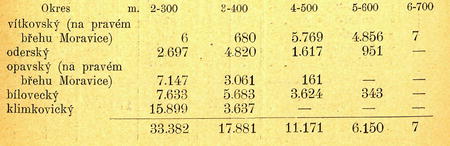 Na Vítkovsku, Odersku a Bílovecku, zvláště tam, kde pro vyšší polohu rolnictví se méně vyplácí, chová se hojně dobytka (plemeno kra-vařské). Údolí oderské v okresu stejnojmenném, . s čilým průmyslem soukenickým, je hojně zalidněno, za to v okresu vítkovském, kde se údolí velice sužuje, je takřka liduprázdné, právě tak jako údolí střední Moravice. Vsi na planině zaměstnávají se vedle zemědělství tkalcovstvím, které jná středisko v městě Vilkové, kde i soukenictví po továrnicku kvete. Na Vítkovsku též mnoho břidlice se láme. Ale to vše nestačí k tomu, aby planina Vítkovská byla četněji zalidnčna. Na Vítkovsku jen 77 obyvatel připadá na 1 km, na nižším Odersku 87. Při tom však ještě žije 1/5 obyvatelstva v okresním městě, v oderském dokonce 2/5 Je tedy venkov velice slabě zalidněn! Městům obyvatelstva rychle přibývá (Odrám + 8.6%, Vítkovu + 10%), za to venkov na Odersku velmi zvolna roste (+ 1.6%), kdežto na Vítkovsku venkov je již konstantní.
