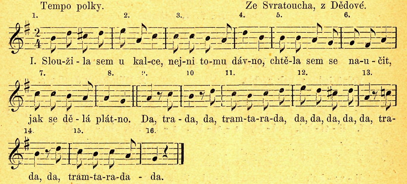 (1.—-8.) Přetančivše obyčejnou polku dokola, stanou a za ruce křížem se vezmouce, tančí (9—16.) řezanku.-Tanec se znova opakuje.