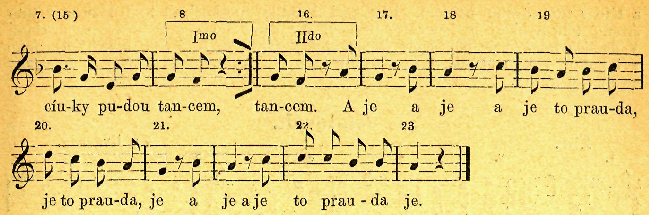 Jeden tanečník vezme dvě dívky pod paže a nejprv podle noty se procházejí, pak se otáčí na celé kolo s jednou, potom s druhou tanečnicí, drže se s oběma stále pod paží. Podobně jako při „Hrachu".