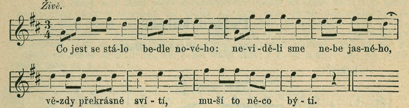 *) Tak zpívají podnes; staré dvojné číslo: dva česká (groše).