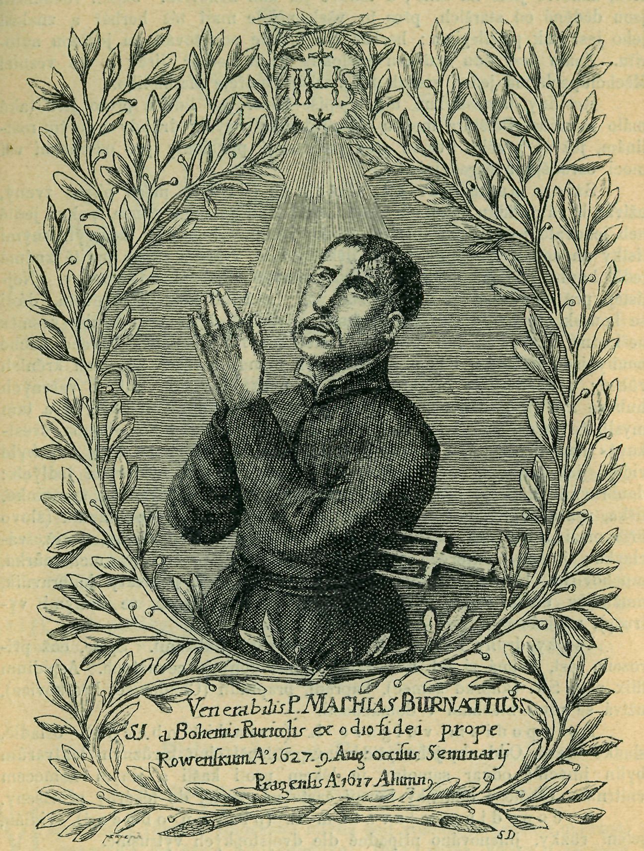 Jesuita Mat. Burnatius, probodnutý od rozlíceného lidu podávkami r. 1627. (Viz článek: Naše vyobrazeni.)