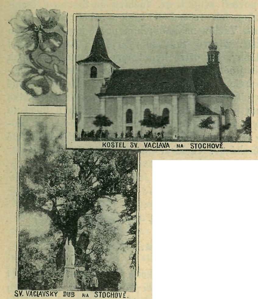 Dlužno podotknouti, že když určené povozy pro sochu sv. Václava se dostavily do Sulcu, shromáždil se tu lid u velikém počtu z okolí, by v duchu doprovodil krásně zhotovenou podobu sv. Václava. A když povozy jeti měly, vložen byl tamním lidem věnec a kytice na prsa sv. Václava. Květiny, které po devítihodinné cestě přes veliké parno do Stochova přivezeny byly, tak čerstvé zůstaly, že prý uvěřiti nelze. Po celé cestě očekávaly zástupy lidu povozy sochu vezoucí, kteréž když spatřili, obnažovali hlavy své. Když povozy ke Stochovu již blížiti se počaly, oznámeno to ovšem osadníkům střelbou z hmoždýřů a hlaholena zvonů. 1 spěchali staří, mladí, by spatřili sochu. Tu teprve viděti bylo radostné rozníeení všech přítomných. Obnažilo hlavu svou nevinné dítko, odhalil šediny ctné i věkem sešlý stařec. Rty všech oněměly — a srdcem táhla modlitba: »Nedej zahynouti nám ni budoucím.« Na VIII. neděli po sv. Duchu posvěcena byla socha ta monsignorem J. Kandlerem, rytířem řádu Františka Josefa a děkanem Slánským. Na památku toho rok co rok na neděli tu koná se sláva na Stochově, z chrámu Páně se ubírá k dubu průvod, kdež se koná přiměřená pobožnost.