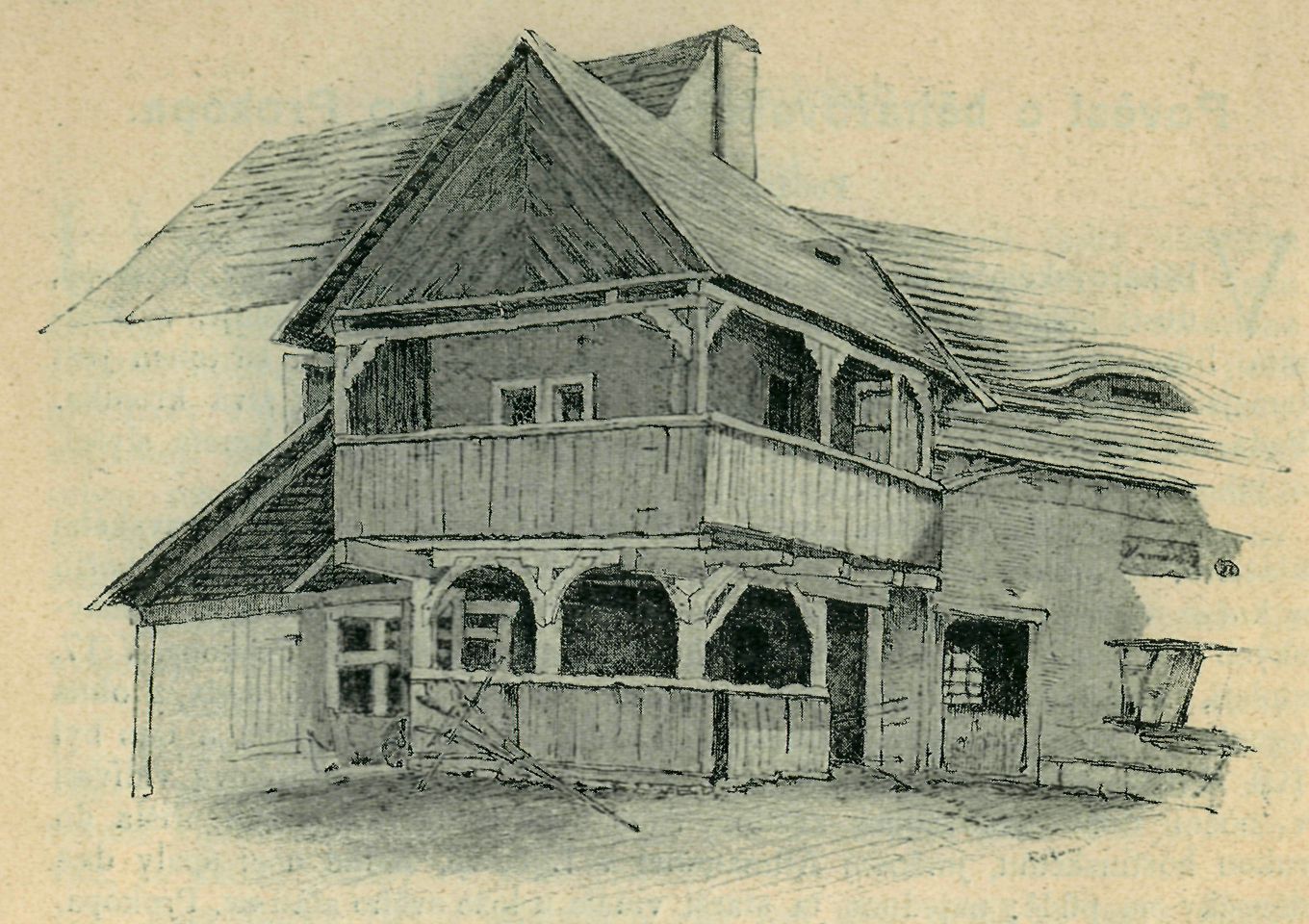 Kovárna v Zahořanech (v Podřipsku) jednak svou rázovitostí, jednak starobylostí upoutala pozornost naši po četbě článku prof. J. Soukupa o kovárnách v G. Lidu XI. č. 4. Viz vyobrazení č. 1. na sir. 344. Zvláštní náčrtek tuto připojený (č. 2.) znázorňuje, jak je vázáno trámoví pod pavlačí.
