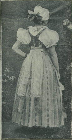 Čepec stával 1 zl. 20 kr. v šajnecb, šátek velký loketní vyšívaný 3 zl. v šajnech, sukně vyšívaná bílá s pruhem širokým 7—8 zl v šajnech