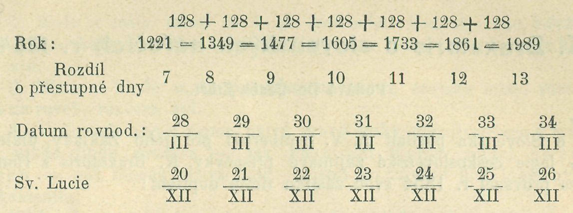 Na základě uvedené tabulky vidíme nejprve, že v zemích, majících kalendář pravoslavný, pořekadlo »Lucie, noci upije« jest správné, i upije tím více nocí, čím vyšší je absolutní hodnota letopočtu dle kalendáře Julianského.