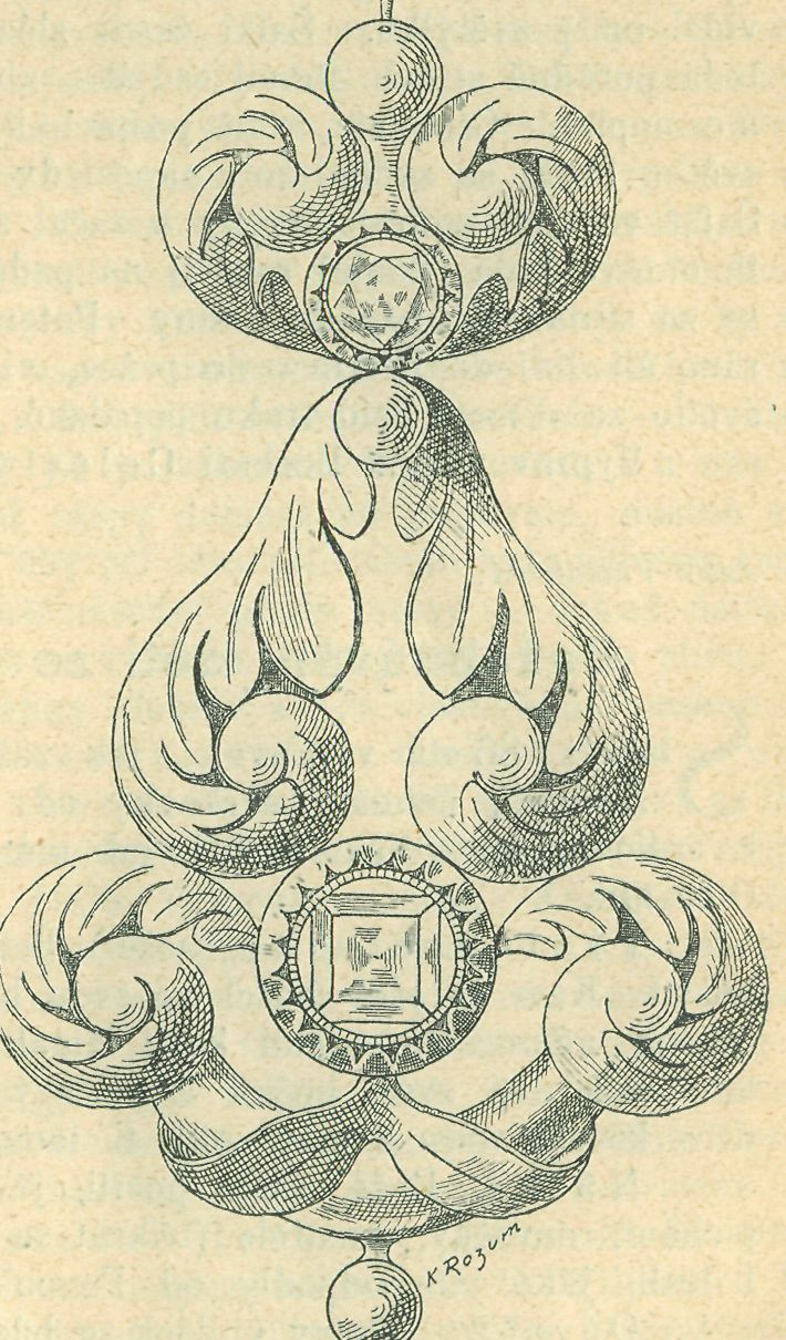 Náušnice v museu Soběslavském. Kreslil prof. K Rozum.