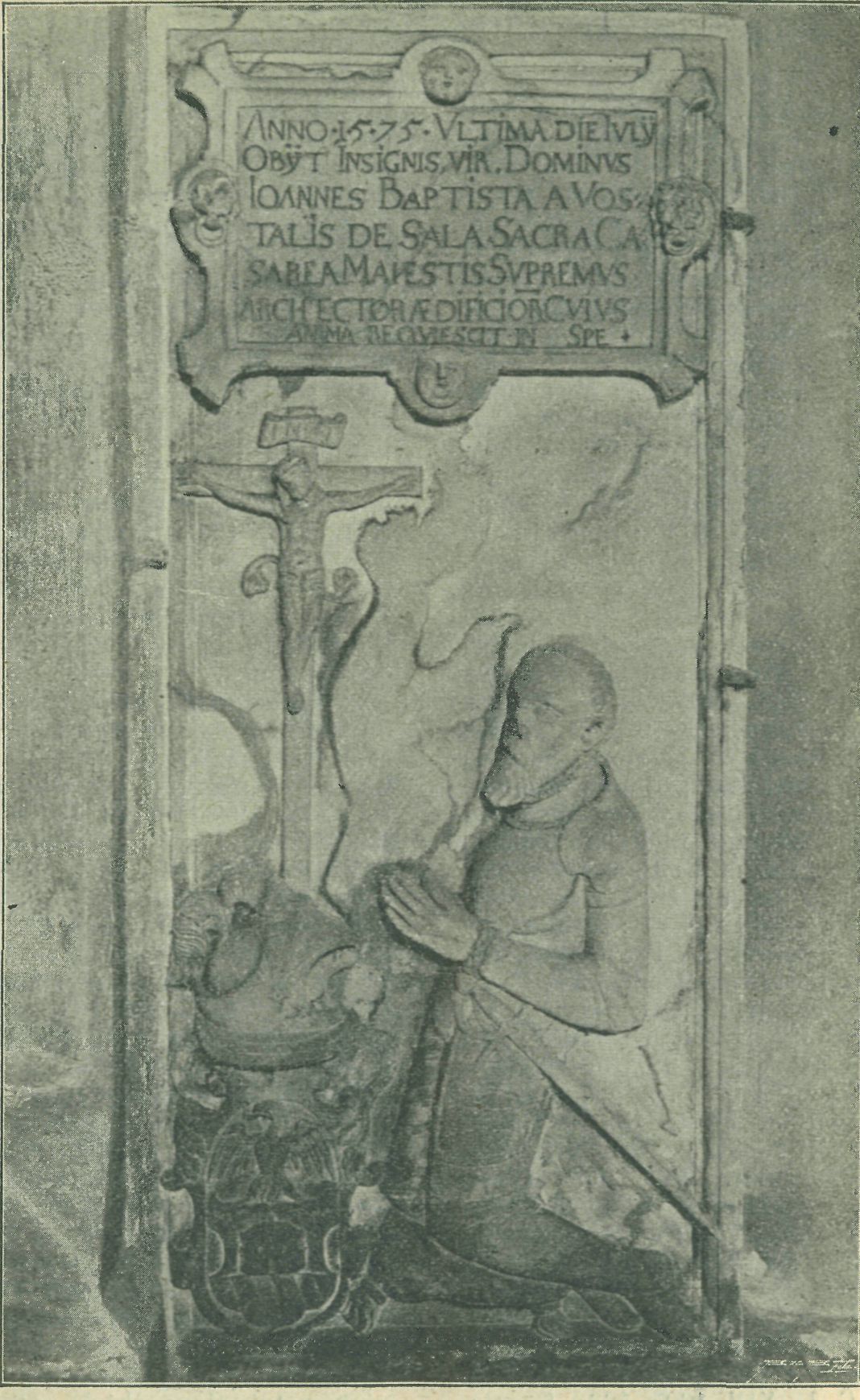 Náhrobek král. stavitele Jana Bapt. de Sala v Poděbradech z r. 1575.