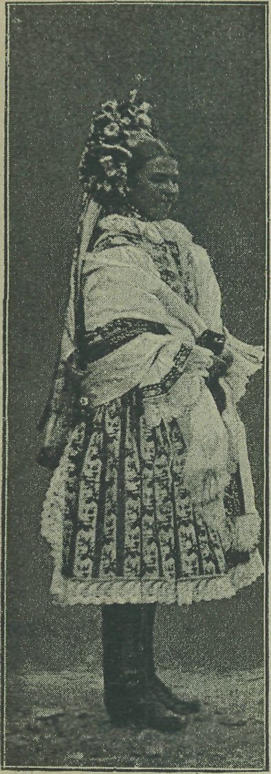 Potom se jde »na zdavky«. Ženich s nevěstou. Hudebníci zahrají »loučení«, jednu sloku písně mariánské a pochod. Ženich se liší od šohajů, že má na košuli bohatší vyšívání a za kloboučkem velkou »vonici«. Bývá drahá, stojí aí 10—12 korun. Tuto »vonicu« po prvé má ženich po první ohlášce, kdy jdou po prvé veřejně ženich a nevěsta do kostela (obyčejně na požehnání), z domu nevěstina; nosí ji po obě neděle ohlášek. K nevěstě jde v prostém kloboučku, tam jest už připraven jiný s vonicou. Nevěsta mívá »zapentlení« hlavy.*) Družba starší bývá ženatý muž, kdežto mladší jest svobodný. Po oddavkách při mši svaté hrají hudebníci; po mši jde ženich s nevěstou k jejím rodičům, a nevěsta nese snídaní jeho rodičům.
