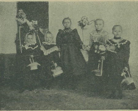 Děvčata s »kyselem« na květnou neděli v Bochoři. Fotogr. Florian Zapletal.