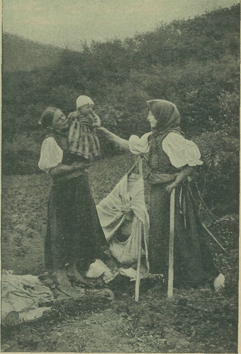 Oblíbená zábava hochů bylo též házení kamením, při čemž se cvičila síla a obratnost, a sice buď házení do dálky buď prostou rukou neb házečkou. Házečka byla hůlka asi 60 cm. dlouhá a na jednom konci rozštípená. Do rozštípeného konce zastrčil se plochý kamínek asi jako vlašský ořech veliký. Svižným máchnutím házečkou letí kamínek velmi daleko.