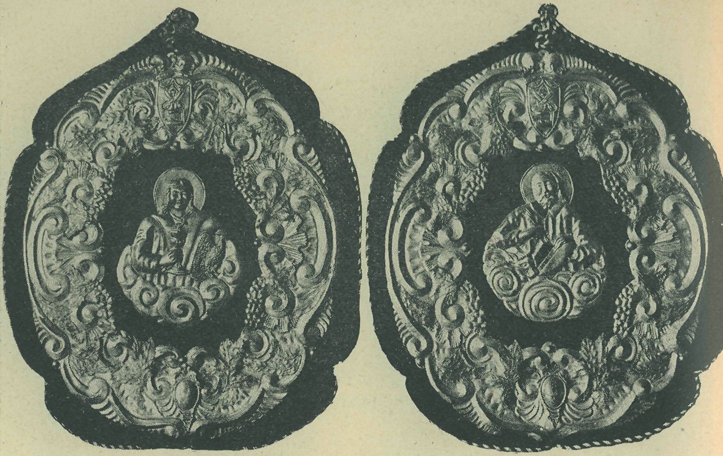 11. Závěsy společenstva krejčovského. V Nymburském museu.