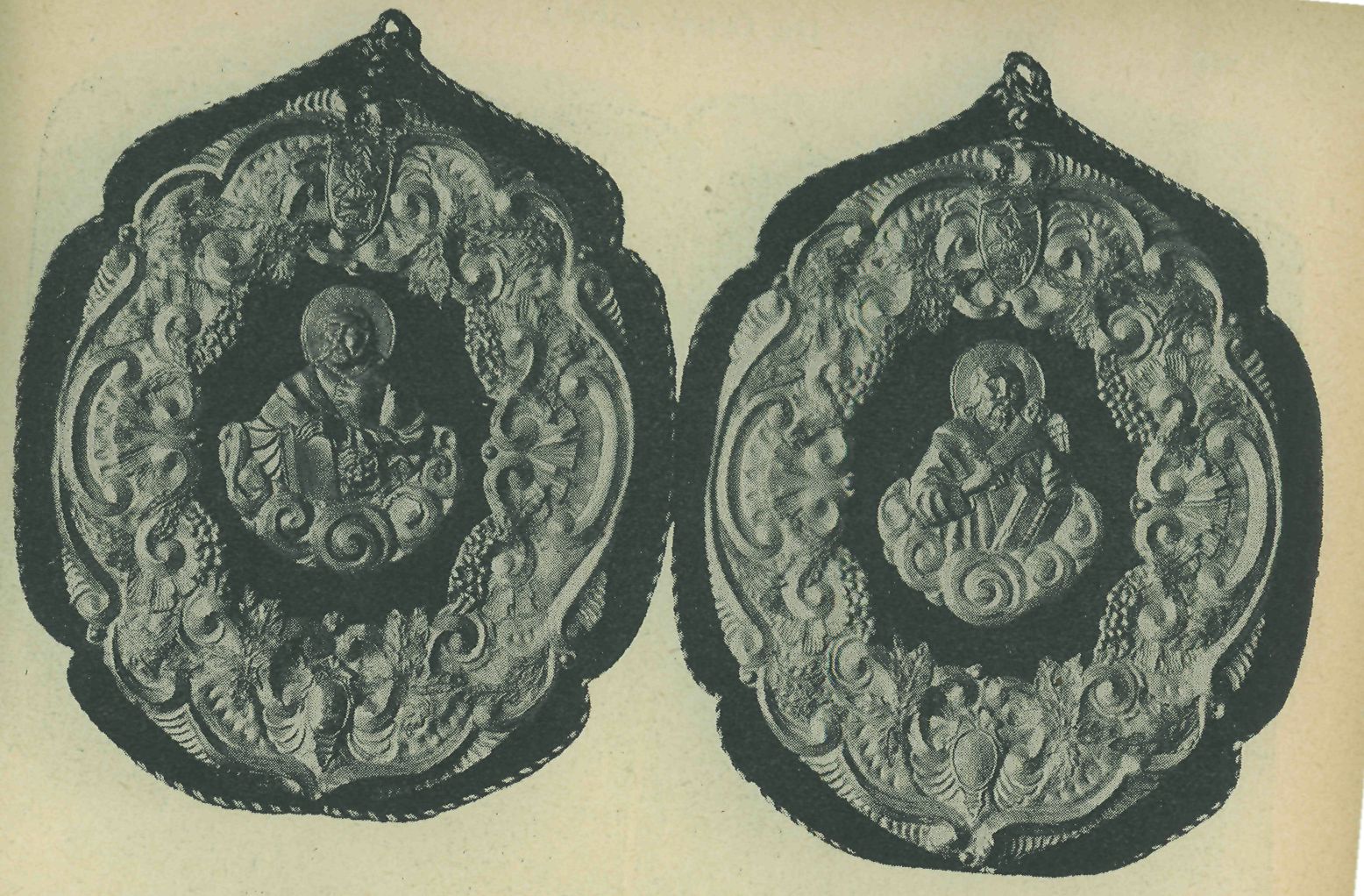 12. a 13. Závěsy společenstva krejčovského. V Nymburském museu.