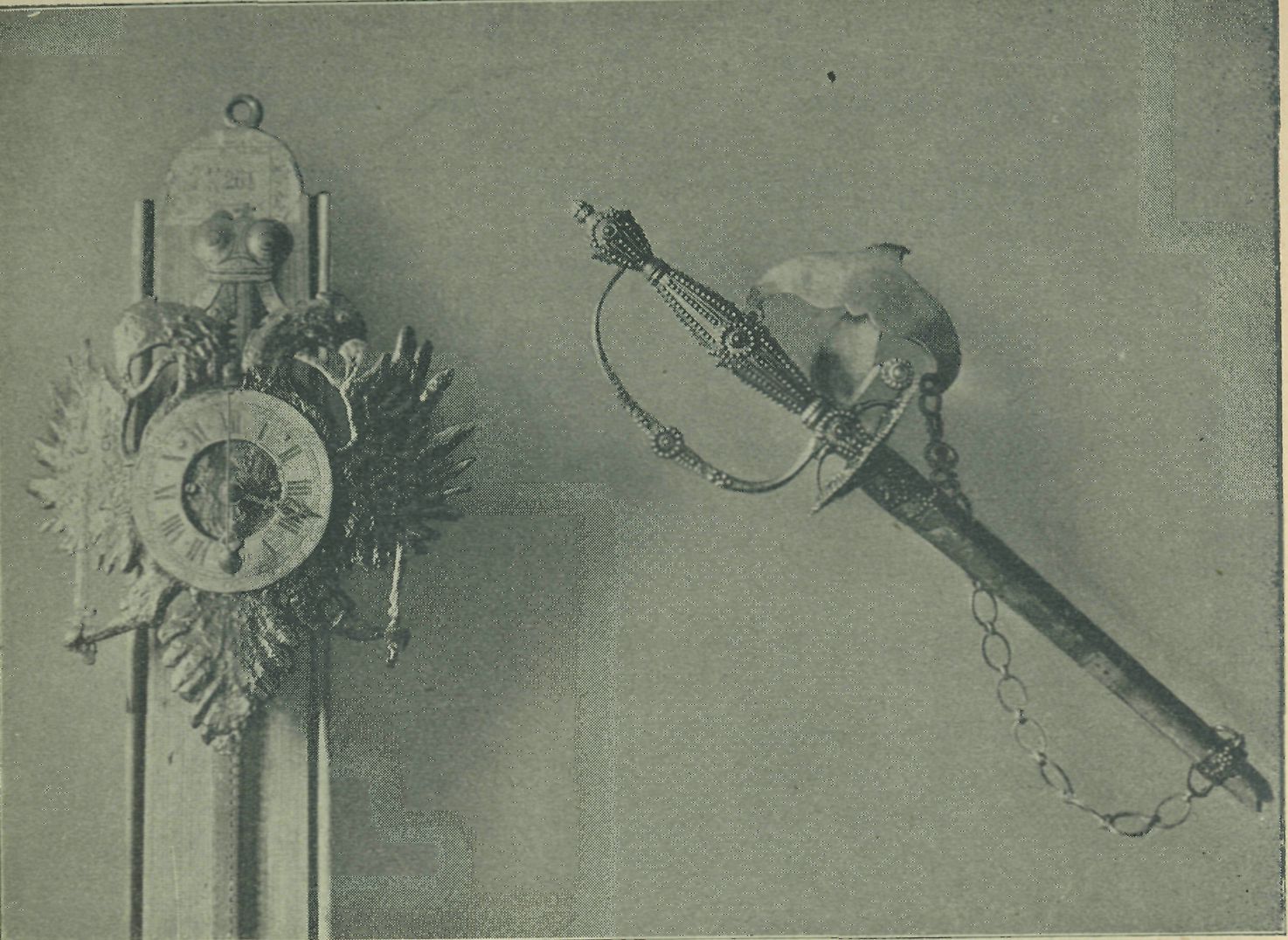 20. Hodiny a purkmistrovský kord XVIII. stol. V Nymburském museu.